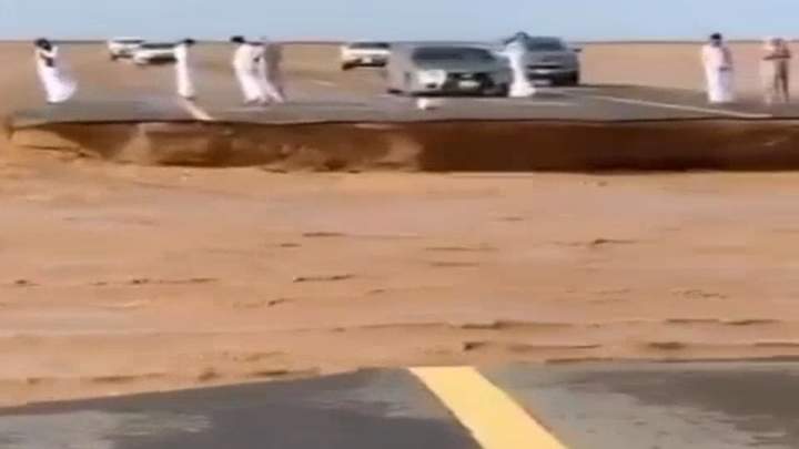 റിയാദ് പ്രവിശ്യയിലെ അഫീഫ് ഹൂമിയാത് റോഡ് ശക്തമായ വെള്ളപ്പാച്ചിലിൽ ഒലിച്ച് പോകാൻ ഇടയായി.