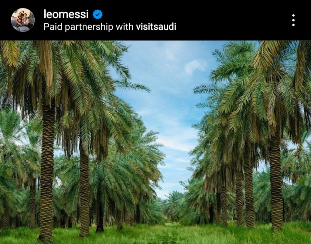ഇപ്പോൾ സൗദിയിൽ എത്തുന്നതിന് ദിവസങ്ങൾക്ക് മുമ്പ്, മെസ്സി തന്റെ ഇൻസ്റ്റാഗ്രാം അക്കൗണ്ടിൽ പച്ചപ്പ് നിറഞ്ഞ ഈന്തപ്പനത്തോട്ടങ്ങളുടെ ഒരു ചിത്രം പോസ്റ്റ് ചെയ്തത് വൈറലായി മാറിയിരുന്നു.