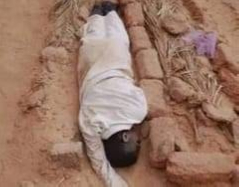 യുവാവ് തന്റെ മാതാവിന്റെ ഖബറിനരികെ കമിഴ്ന്ന് കിടക്കുന്ന ചിത്രം കാണാം.