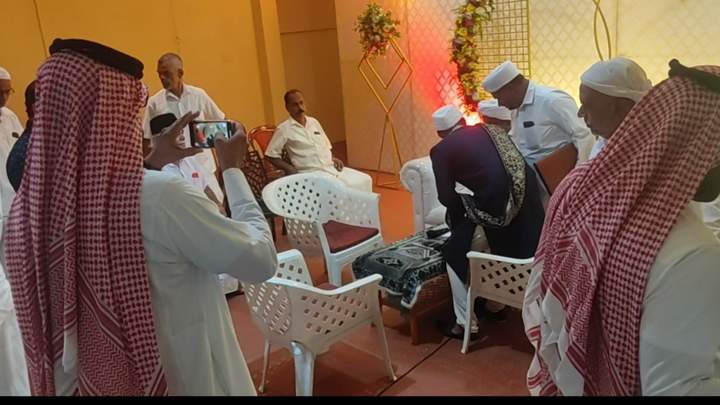 സൗദി അതിഥികളിൽ ഒരാൾ നികാഹ് ചടങ്ങുകൾ കൗതുകത്തൊടെ മൊബൈലിൽ പകർത്തുന്ന വീഡിയോ കാണാം.