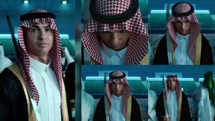 സൗദി വസ്ത്രത്തോടൊപ്പം വാളും കൂടെ കയ്യിലേന്തിയ റൊണാൾഡോയുടെ പ്രൗഡിയാർന്ന വൈറലായ ചിത്രങ്ങൾ താഴെ കാണാം