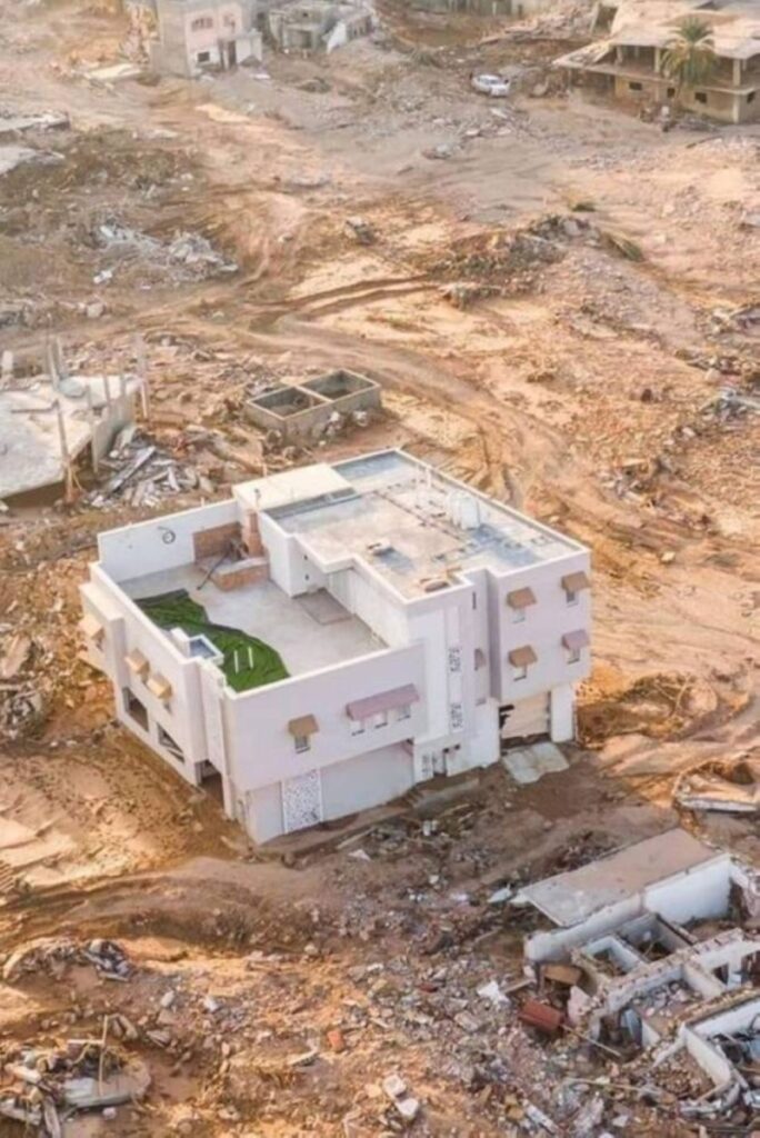 ലിബിയൻ വെള്ളപ്പൊക്കത്തിൽ എല്ലാം തുടച്ച് മാറ്റപ്പെട്ടിട്ടും ഒരു വീട് മാത്രം യാതൊരു കേട് പാടും കൂടാതെ നില നിന്നത് അത്ഭുതമാകുന്നു