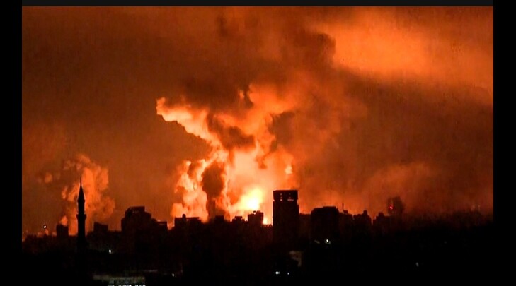 ഗസയുടെ പല ഭാഗങ്ങളിലും ഇസ്രായേലി ബോംബാക്രമണം ശക്തമക്കിയിരിക്കുകയാണ്. ഏത് നിമിഷവും എന്തും സംഭവിക്കാമെന്ന നിലയിലാണ് ഫലസ്തീൻ ജനത.
