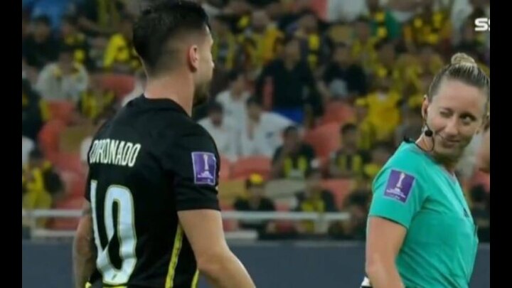 ജിദ്ദ: കഴിഞ്ഞ ദിവസം ജിദ്ദയിൽ നടന്ന ഇത്തിഹാദ് – ഓക്ലാൻഡ് സിറ്റി മത്സരം നിയന്ത്രിച്ച വനിതാ റഫറി ടോറി പെൻസൊ കളിക്കാരനു നേരെ കണ്ണിറുക്കിക്കാണിക്കുന്ന രംഗം സോഷ്യൽ മീഡിയയിൽ വൈറലാകുന്നു.