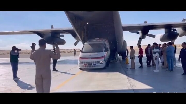 കഴിഞ്ഞ ദിവസം അൽ അരീഷ് എയർപോർട്ടിൽ ലാന്റ് ചെയ്ത സൗദി ദുരിതാശ്വാസ വിമാനത്തിൽ നിന്ന് ആംബുലൻസ് പുറത്തിറക്കുന്ന വീഡിയോ കാണാം.