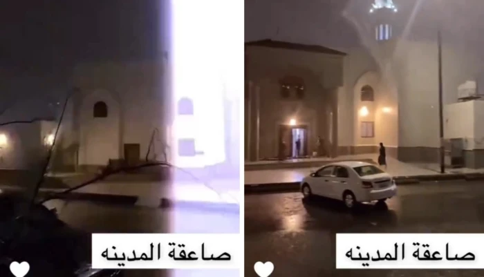 മദീനയിൽ ഒരു പള്ളിക്ക് സമീപമുണ്ടായ ശക്തമായ മിന്നലിൽ നിന്ന് കുട്ടികൾ രക്ഷപ്പെട്ടത് തലനാരിഴക്ക്; വീഡിയോ കാണാം