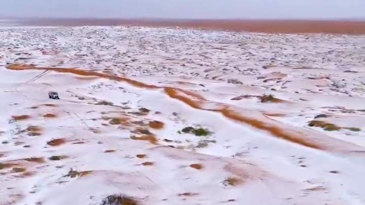ഹായിലിൽ ശക്തമായ ആലിപ്പഴവർഷത്തെ തുടർന്ന് വെള്ള പുതച്ചുകിടക്കുന്ന മരുഭൂമിയുടെ വീഡിയോ നിരവധി പേർ സോഷ്യൽ മീഡിയയിൽ പങ്കുവെച്ചു. വീഡിയോ കാണാം👇