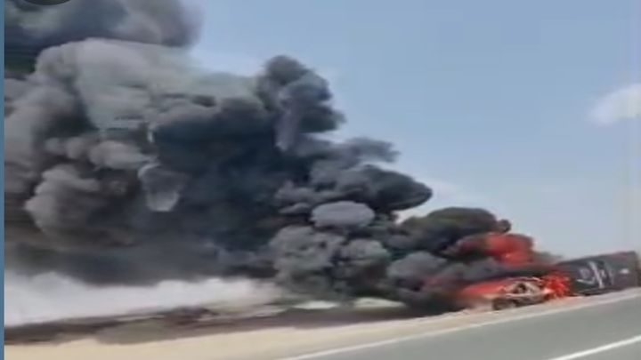 സൗദിയിൽ ഉംറ തീർത്ഥാടകർ സഞ്ചരിച്ച ബസിന് തീപ്പിടിച്ച് 6 പേർ മരിച്ചു; വീഡിയോ