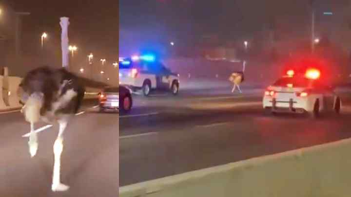 ഒട്ടകപ്പക്ഷിയെ പിടികൂടാനുള്ള ശ്രമത്തിന്റെ ഭാഗമായി പൊതുസുരക്ഷാ വകുപ്പിന്റെയും ട്രാഫിക് പോലീസിന്റെയും വാഹനങ്ങൾ ഒട്ടകപ്പക്ഷിയെ പിന്തുടരുന്നത് കാണാം.