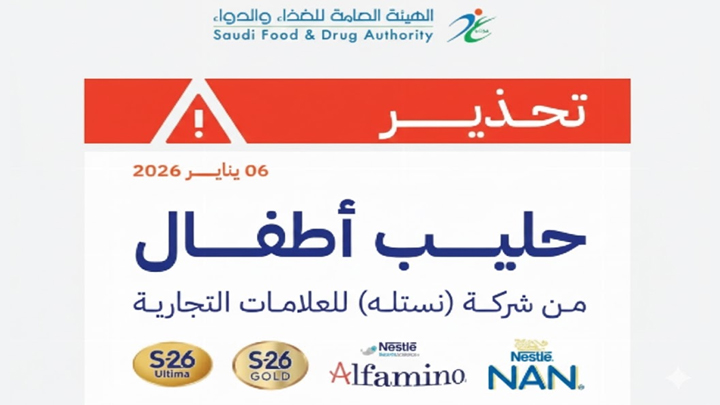 നെസ്ലെയുടെ നാല് പ്രധാന ബ്രാൻഡുകളിലുള്ള ഇൻഫന്റ് ഫോർമുല ഉൽപ്പന്നങ്ങൾ ഉപയോഗിക്കുന്നതിനെതിരെ സൗദി ഫുഡ് ആൻഡ് ഡ്രഗ് അതോറിറ്റി (SFDA) രക്ഷിതാക്കൾക്ക് ജാഗ്രതാ നിർദ്ദേശം നൽകി.