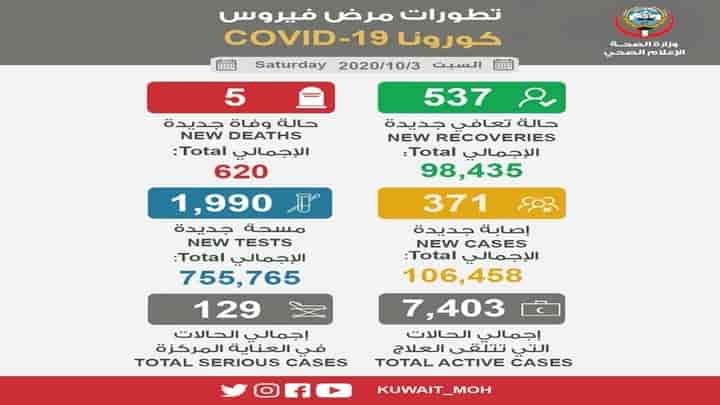 Read Moreകുവൈത്ത് സിറ്റി: കുവൈത്തിൽ ഇന്ന് റിപ്പോർട്ട് ചെയ്ത കോവിഡ് കേസുകൾ 371 ആയി കുറഞ്ഞു. 537 പേർക്കുകൂടി രോഗം സുഖപ്പെട്ടതോടെ രാജ്യത്ത് അസുഖം ഭേദമായവരുടെ എണ്ണം 98,435