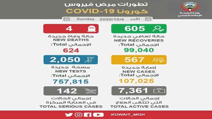 Read Moreകുവൈത്ത് സിറ്റി: രാജ്യത്ത് ആകെ കോവിഡ് രോഗികളുടെ എണ്ണത്തിൽ കുറവ് രേഖപെടുത്തിയെങ്കിലും ഇന്ന് റിപ്പോർട്ട് ചെയ്ത കേസുകൾ 567 ആയി ഉയർന്നു. അതേ സമയം രോഗമുക്തിയുടെ നിരക്കും