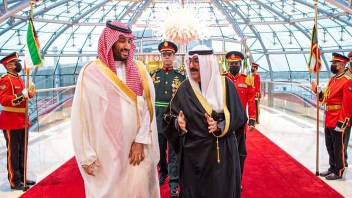 Read Moreജിസിസി പര്യടനത്തിൻ്റെ ഭാഗമായി സൗദി കിരീടാവകാശി മുഹമ്മദ് ബിൻ സല്മാൻ രാജകുമാരൻ കുവൈത്തിലെത്തി. കുവൈത്ത് കിരീടാവകാശി മിശ്അൽ അഹമദ് സ്വബാഹ് രാജകുമാരനെ സ്വീകരിക്കാനെത്തിയിരുന്നു. തുടർന്ന് കുവൈത്ത് അമീർ