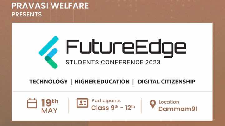 Read Moreഒന്പതു മുതല് പന്ത്രണ്ടാം ക്ലാസ് വരെയുള്ള മലയാളി വിദ്യാര്ഥികള്ക്കായി പ്രവാസി വെല്ഫെയര് – ദമ്മാമില് സംഘടിപ്പിക്കുന്ന ഫ്യൂച്ചര് എഡ്ജ് കോണ്ഫറന്സ് മേയ് 19നു നടക്കും. Technology, Higher