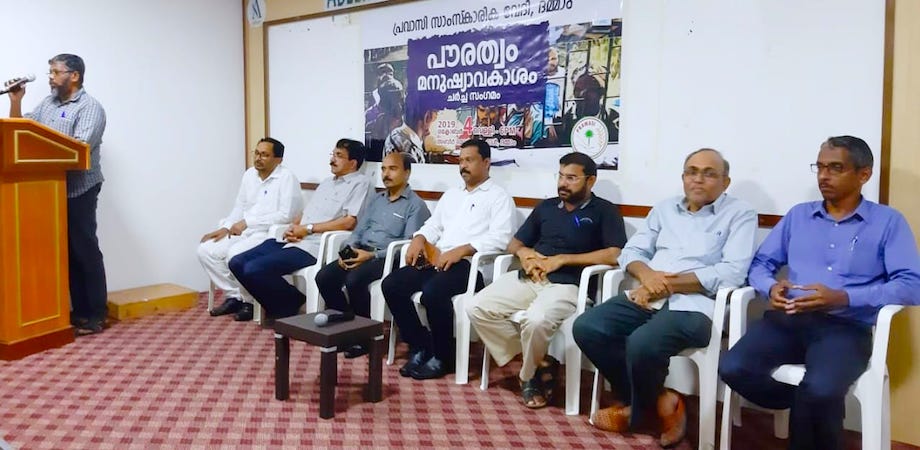 Read Moreദമ്മാം: പതിറ്റാണ്ടുകൾ ജീവിച്ച നാട്ടിൽ നിന്ന് പൗരത്വം നിഷേധിച്ച് അനിശ്ചിതത്വത്തിലേക്ക് തള്ളിവിടുന്ന നയം തികഞ്ഞ മനുഷ്യാവകാശ ലംഘനമാണെന്ന് പ്രവാസി ചർച്ചാ സംഗമം. ഏക ശിലാത്മകമായ രാഷ്ട്ര നിർമിതിയെന്ന
