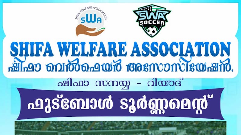 Read Moreറിയാദ്: ശിഫാ വെൽഫെയർ അസോസിയേഷൻ നാലാമത് ഫുട്ബോൾ ടൂർണമെന്റ് സ്വാതന്ത്ര്യ ദിനത്തോടനുബന്ധിച്ച് ഓഗസ്റ്റ് 15 വ്യാഴാഴ്ച രാത്രി 8.30 മുതൽ ശിഫാ സനയ്യാ സാംസ്കാരിക മന്ദിരം (ജാലിയാത്ത്)