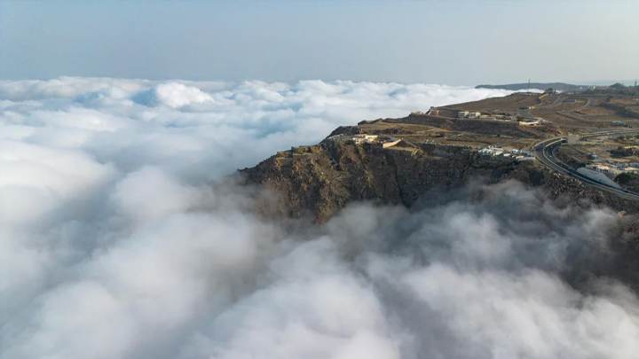 ശൈത്യകാലവും, മഴയും ഒരുമിച്ചതോടെ കോടമഞ്ഞിൽ കുളിച്ച് താഇഫിലെ മലനിരകൾ